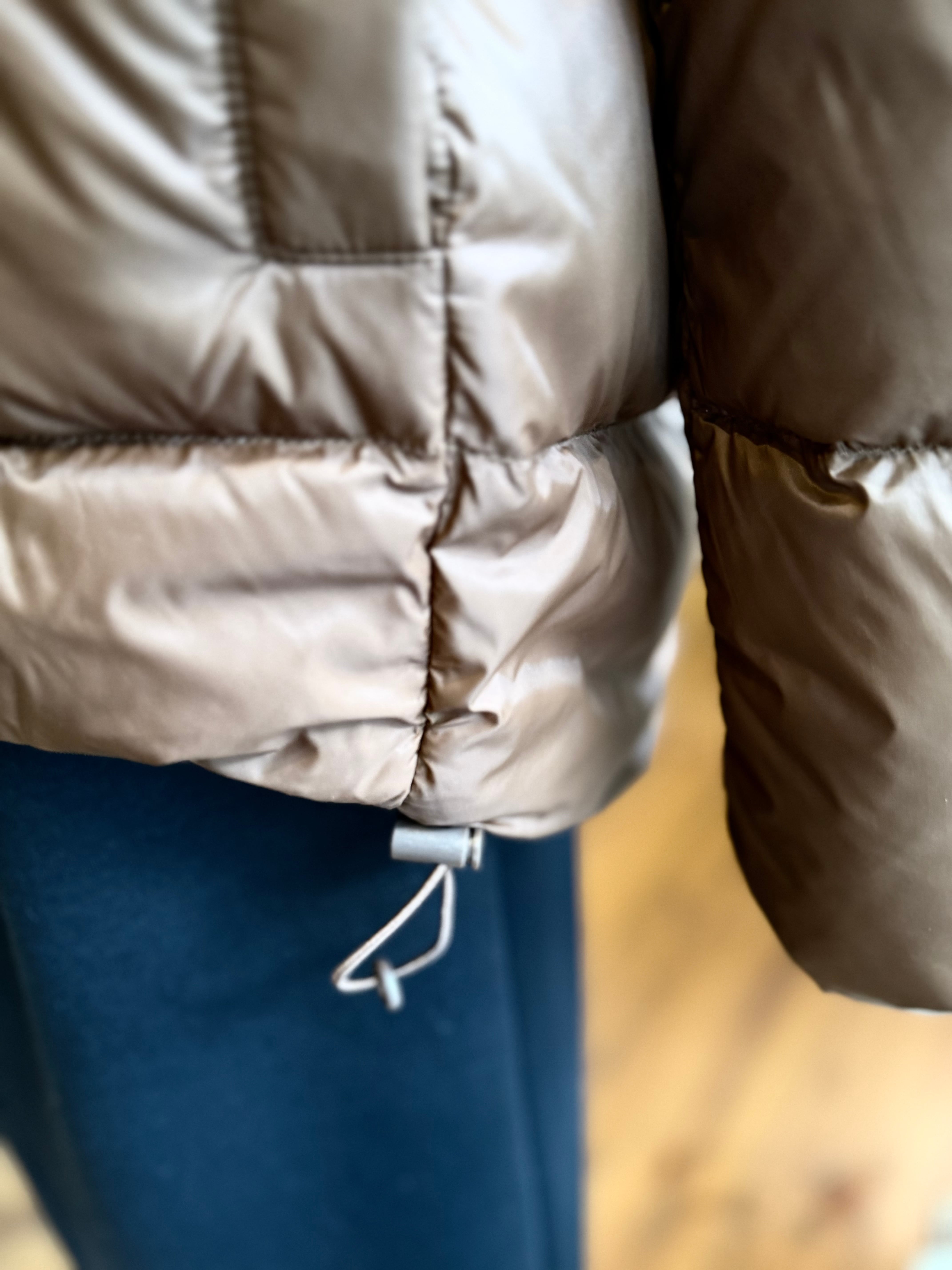 お尻をカバーしてくれる後ろ長めのふんわりコクーンシルエットでカジュアル感抑えめで綺麗めに着られること、柔らかな生地で動きやすいこと、ダウン90%フェザー10%で軽いこと、裾ドローコードでシルエット丈感が微調整できること、お値段ダウンにしてはとってもお手頃です。