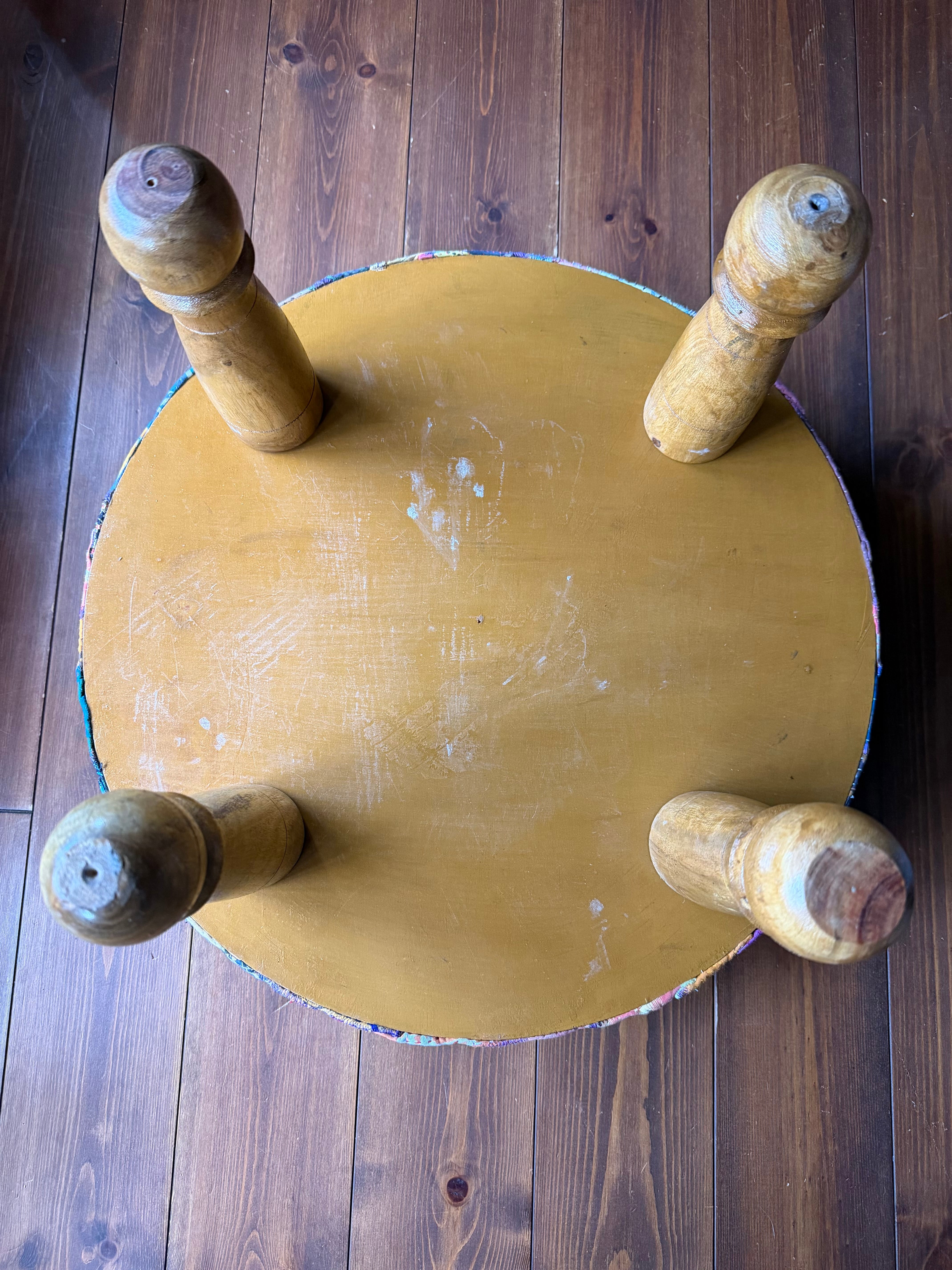 古布を使用しています。染みなどの汚れや色あせ・穴開き・破れなど古布ならではの味わいです。インド製のためスツールの脚は、傷、ゆがみ、亀裂、ひび割れなどがあります。不良品ではございませんのでご了承の上ご検討ください。