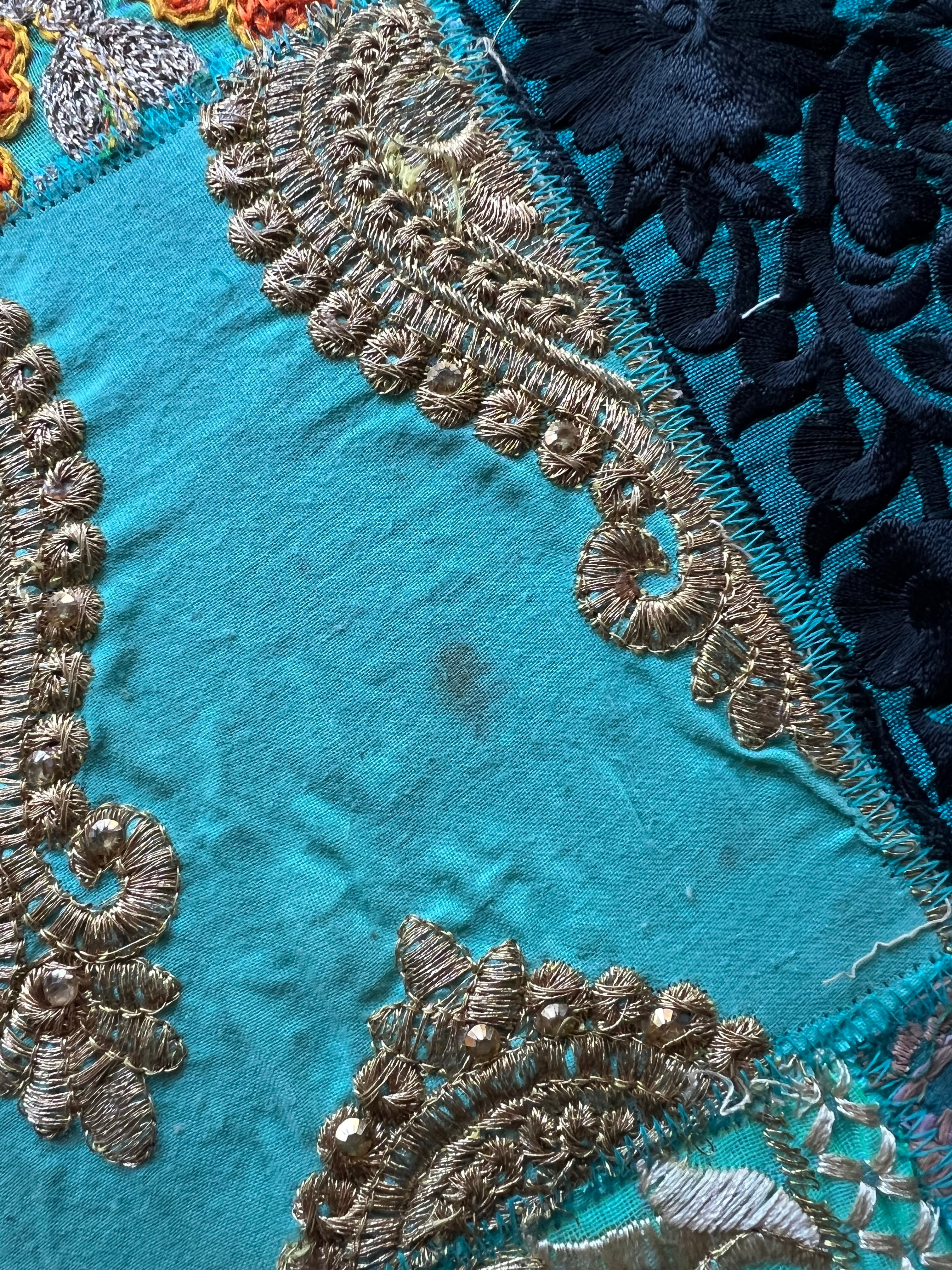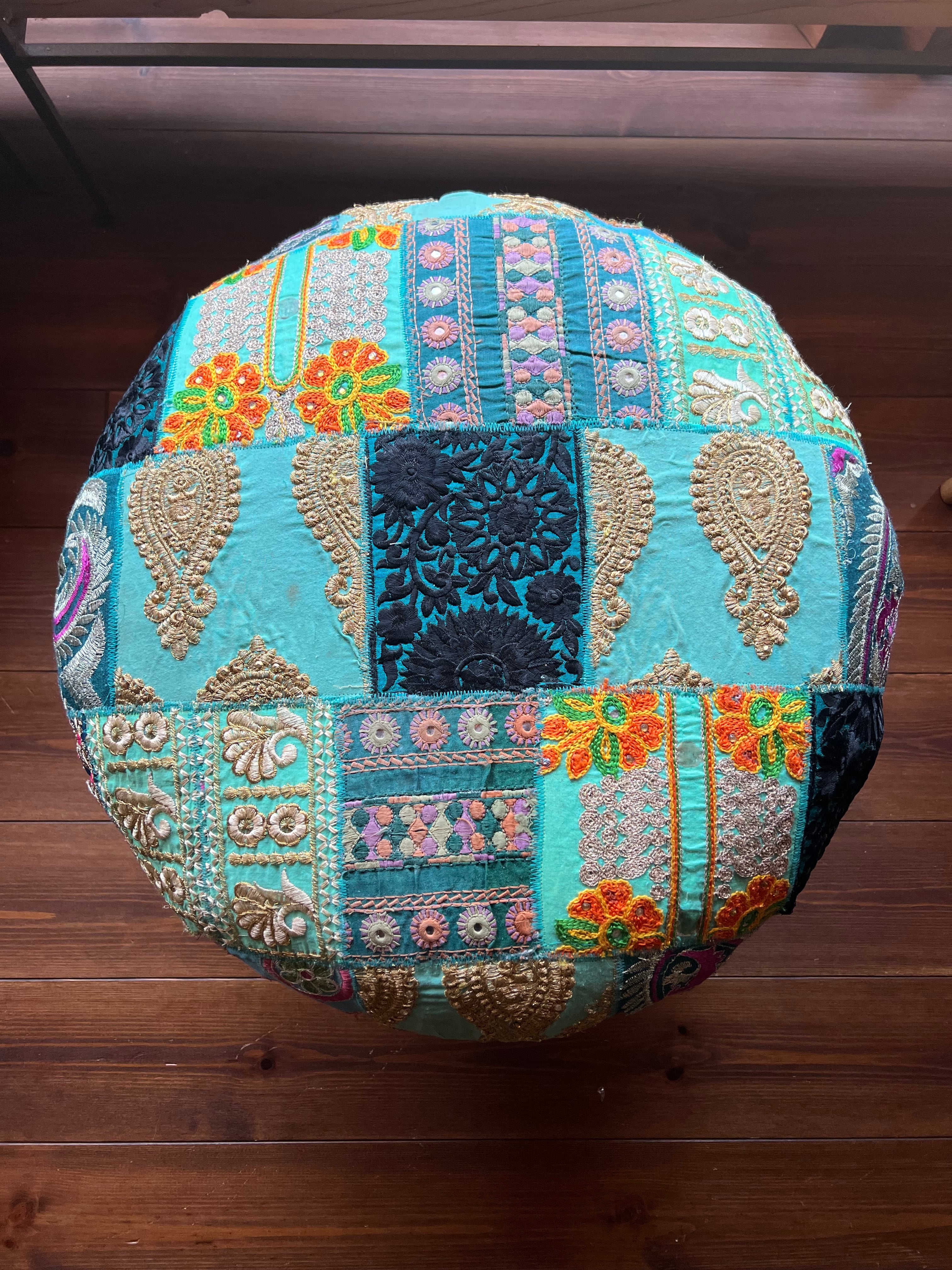 着られなくなったドレスなどの刺繍部分をパッチワークにして仕立てたカラフルなスツールはお部屋に置くだけで雰囲気抜群のアイテム。同じものは一つもない一点もので愛着のわくアイテムです。見た目の可愛さだけでなく座面が広く低めなので日本人には特に落ち着いて座れる高さで実用性もあります。