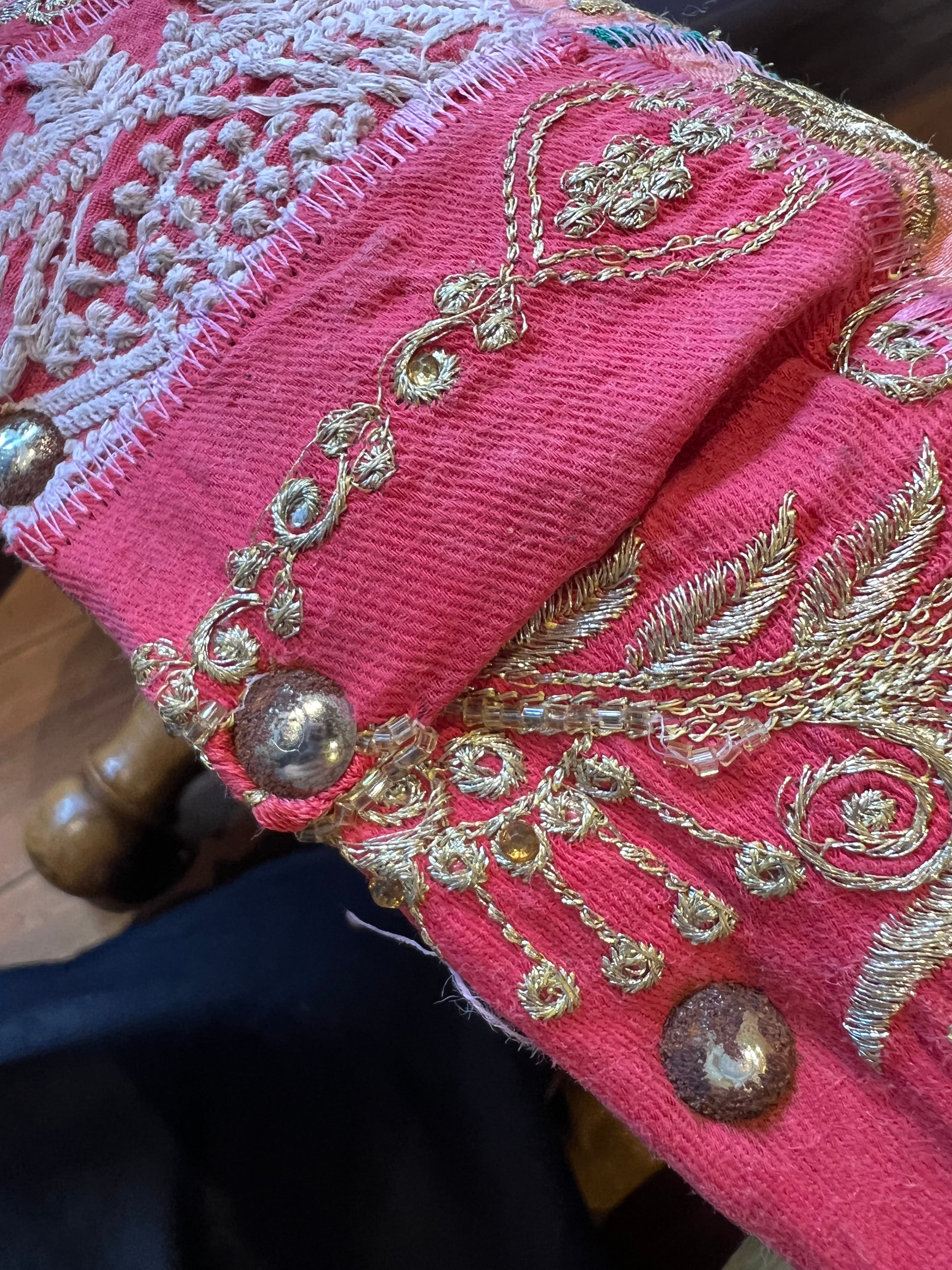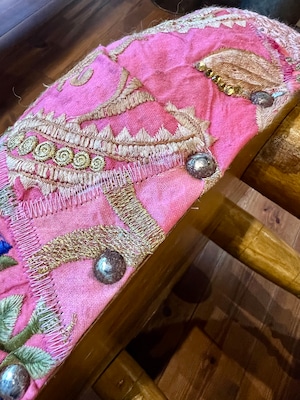着られなくなったドレスの刺繍部分をパッチワークにして仕立てたカラフルなスツールはお部屋に置くだけで雰囲気抜群のアイテム。同じものは一つもない一点もので愛着のわくアイテムです。見た目の可愛さだけでなく座面が広く低めなので日本人には特に落ち着いて座れる高さで実用性もあります。
