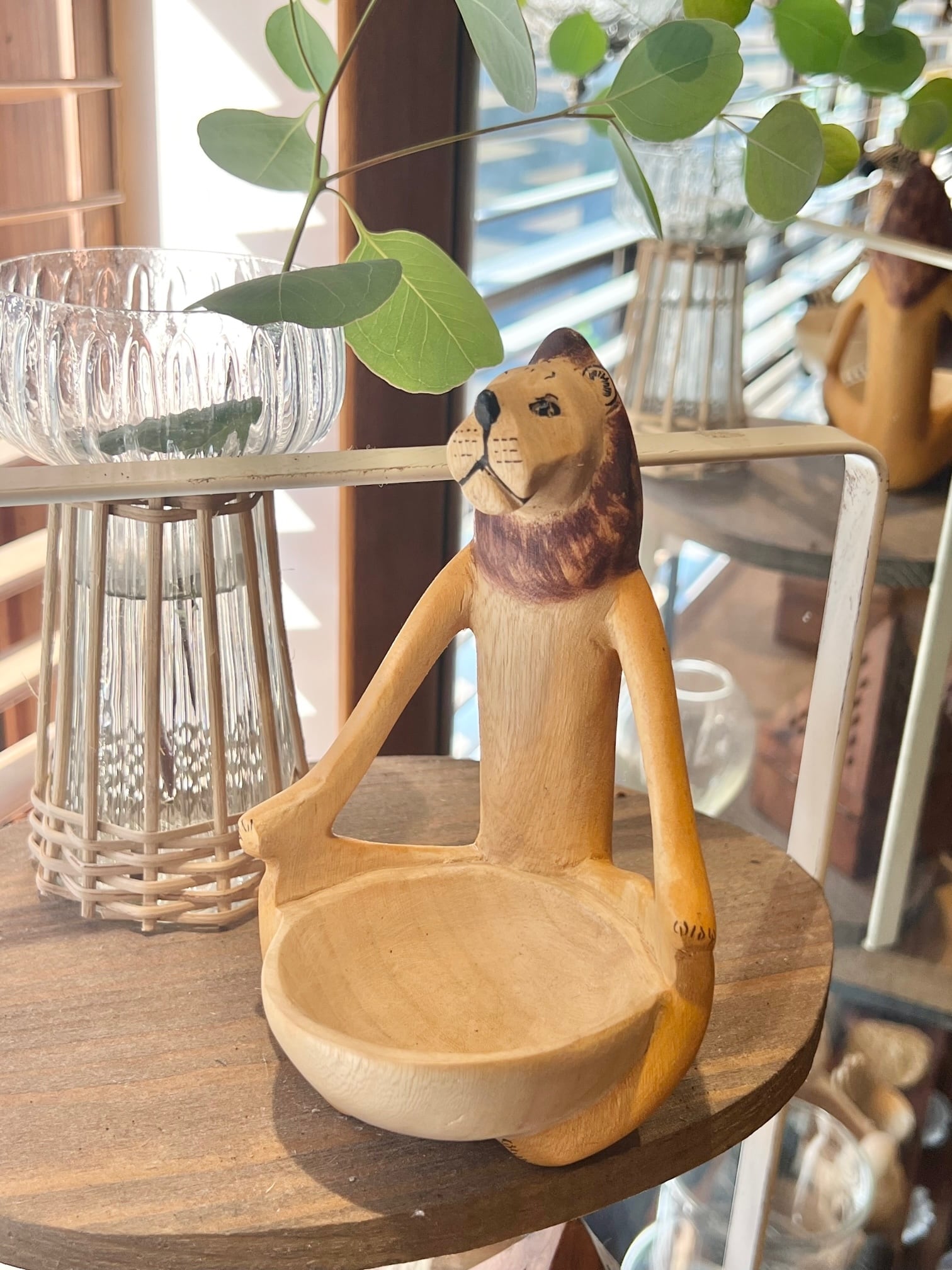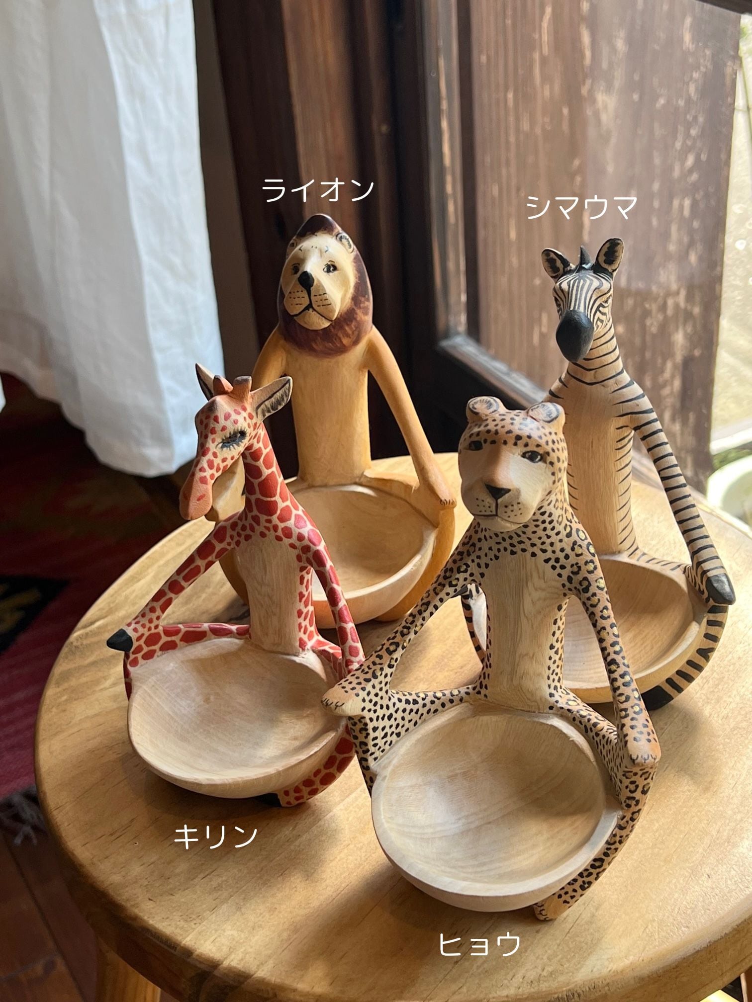 ヨガポーズをした動物の小物入れ。アクセサリーやコインなど小物入れに最適です。木彫り動物は、ケニアを代表する工芸品で、職人によって丁寧に手作りされています。